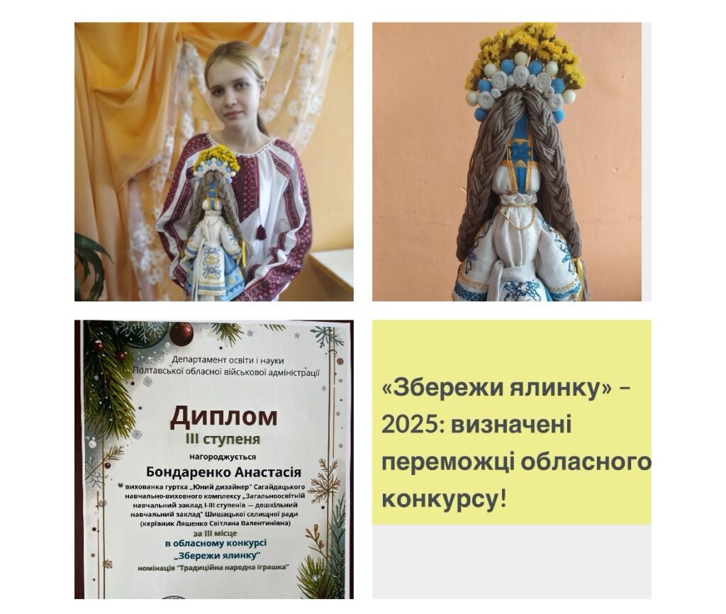 Визначені переможці обласного конкурсу. Ними стали вихованки гуртка «Юний дизайнер»: Шпанкіна Станіслава – Диплом ІІІ ступеня (номінація «Новорічний подарунок») та Бондаренко Анастасія – Диплом ІІІ ступеня (номінація «Традиційна народна іграшка»).