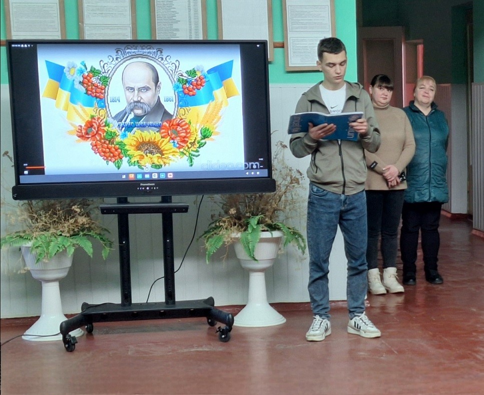 Вихованка закладу Климченко Дарина прочитала поезію великого Кобзаря, а всі присутні переглянули відеофільм про життєвий та творчий шлях Шевченка.