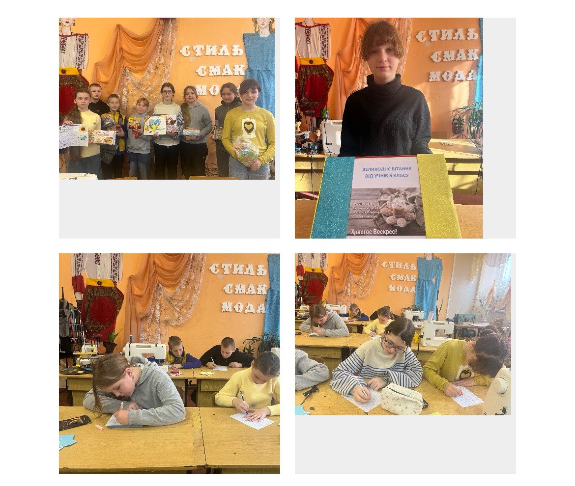 Щоб приємні миті світлого свята Христового Воскресіння відчули наші захисники та захисниці, здобувачі освіти, вчителі, працівники дошкільного відділу та обслуговуючий персонал НВК зібрали великодні гостинці: паски, солодощі, малюнки, обереги, продукти харчування, засоби особистої гігієни для наших бійців, які проходять лікування та реабілітацію у госпіталях Полтави.